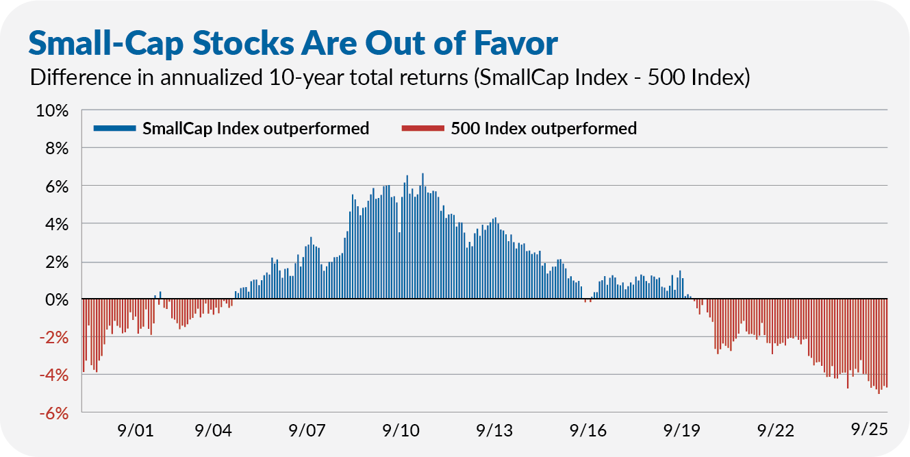 The small-cap index fund has trailed 500 Index over the past decade by the largest margin in three decades. That’s an outlier and an opportunity—if you ask me.