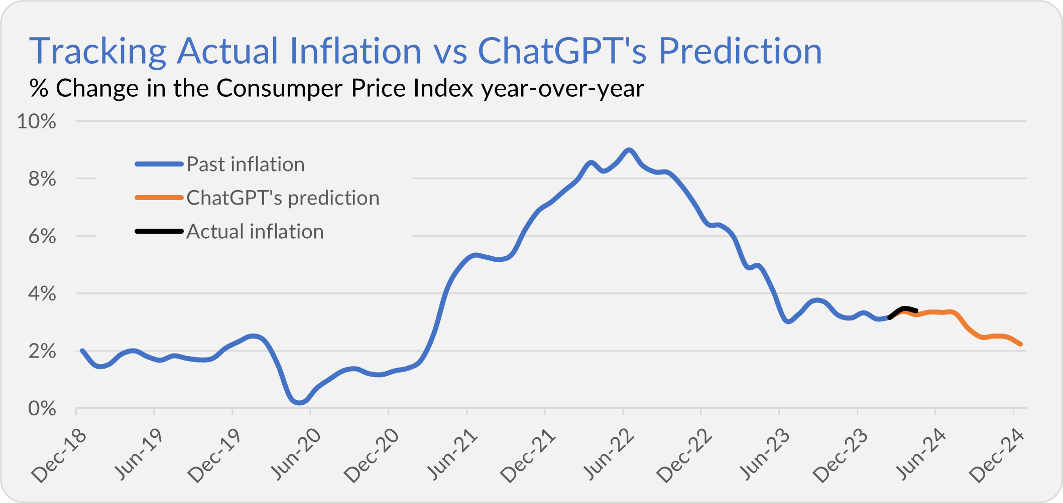 ChatGPT expected inflation to clock in at 3.3% in April—not far off.