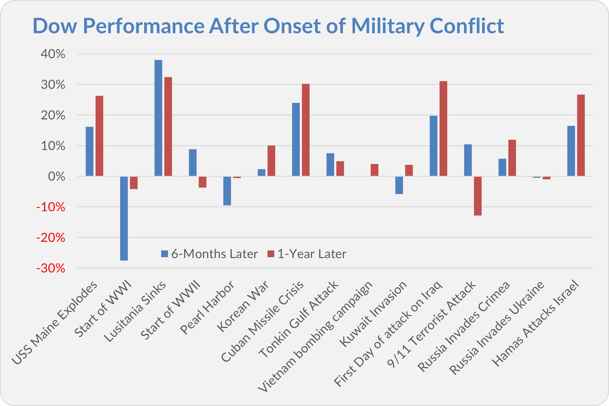 For more perspective, the chart below shows how the Dow Jones Industrial Average (Dow) fared following the onset of military conflicts over the past 125 years. On average, the Dow gained 7% in the first six months, on its way to advancing 11% in the first year. I don’t mean to downplay the human toll of these conflicts, but war shouldn’t deter investors from spending time in the market.