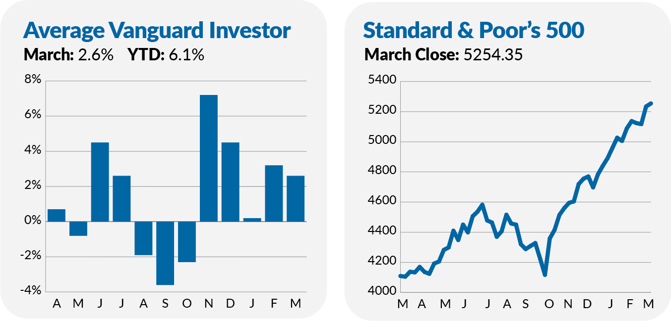 Or, if you prefer to view it through a Vanguard lens, 50 of the firm’s U.S. and foreign stock funds set record (total return) highs in March. Everything from Total Stock Market Index (VTSAX) to Dividend Growth (VDIGX) to Capital Opportunity (VHCOX) to U.S. Value Factor ETF (VFVA) to European Index (VEUSX) to Global Minimum Volatility (VMVFX) set new highs.