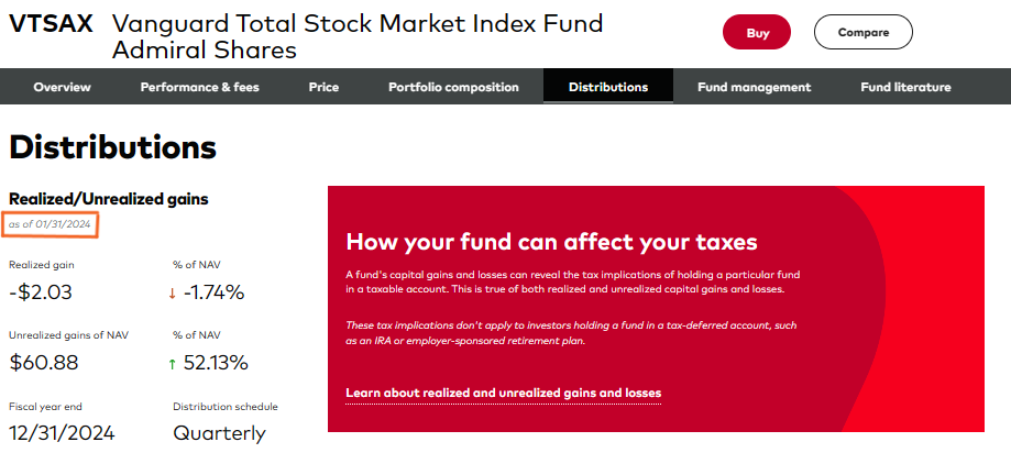 In particular, I’m talking about the realized and unrealized capital gain data that Vanguard typically reports each month. I have always lauded Vanguard for sharing this information regularly—every fund company should follow Vanguard’s lead. However, the data on Vanguard’s website is still “as of 1/31/2024.”