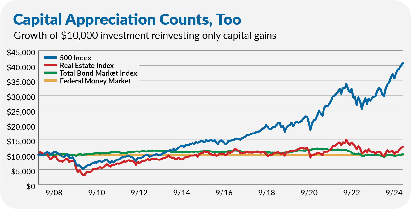 Second, and more importantly, a singular focus on income misses a crucial piece of the total return equation—the combination of income and capital appreciation.