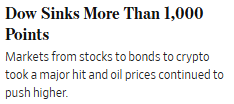 On Tuesday morning, the Wall Street Journal’s webpage greeted readers with a headline of “Dow Sinks More Than 1,000 Points.”