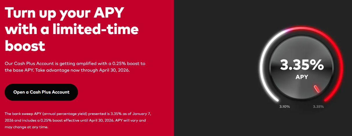 Last week, Vanguard introduced a “limited-time boost” to Cash Plus Account’s yield. Instead of earning 3.10%, Cash Plus now pays 3.35%—an extra 0.25%—through April 30, 2026.