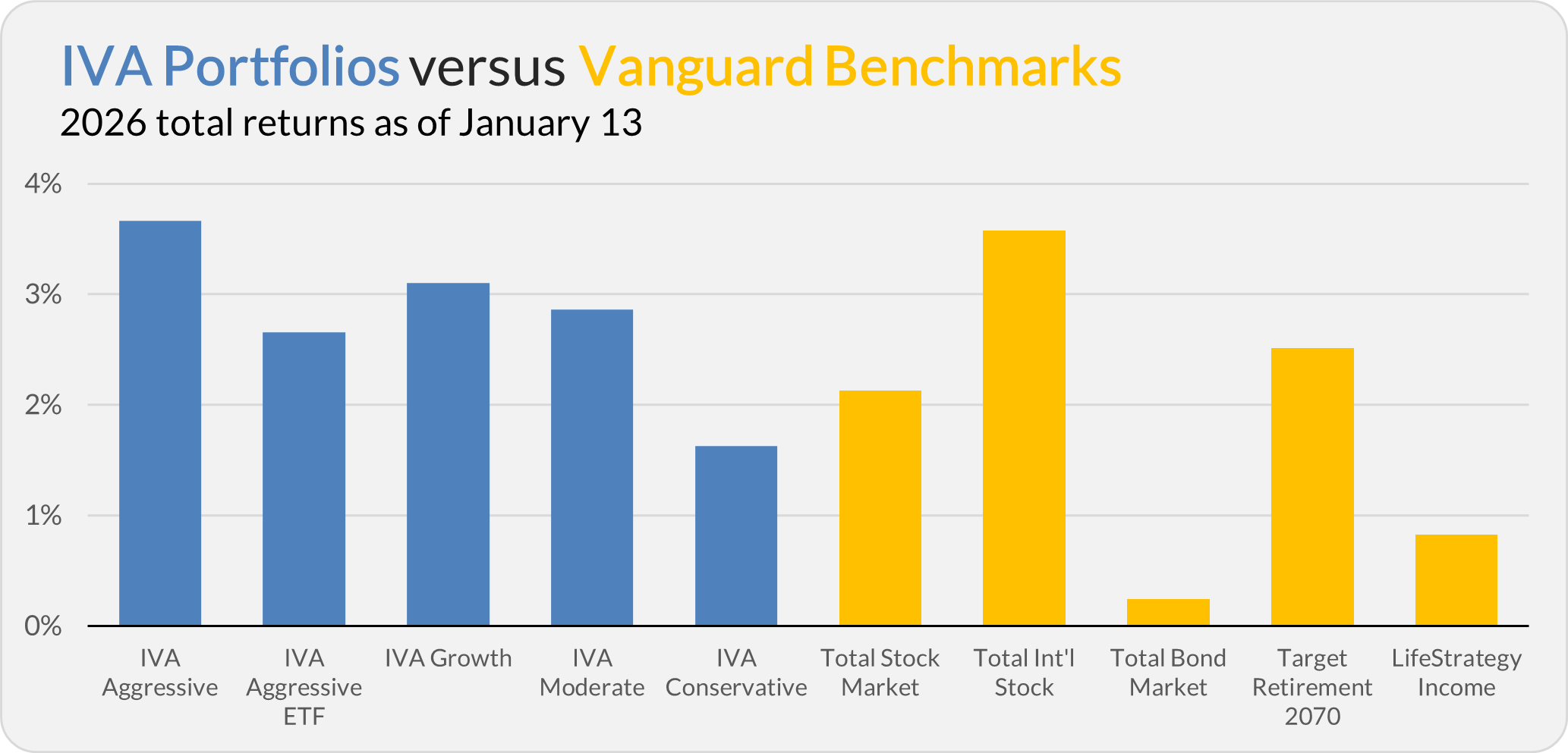This compares to a 2.1% gain for Total Stock Market Index (VTSAX), a 3.6% return for Total International Stock Index (VTIAX), and a 0.2% return for Total Bond Market Index (VBTLX). Vanguard’s most aggressive multi-index fund, Target Retirement 2070 (VSNVX), is up 2.5% for the year, and its most conservative, LifeStrategy Income (VASIX), is up 0.8%.