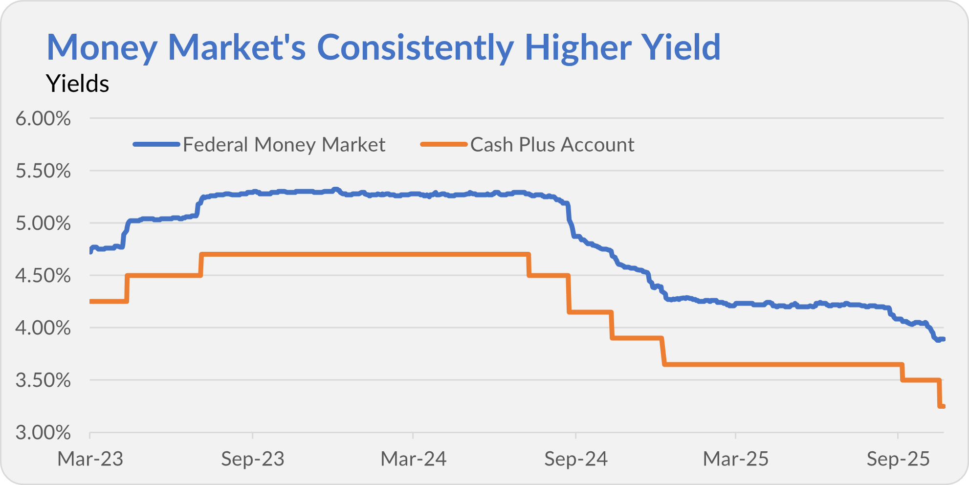 Let’s put this into perspective. Earning 3.25% is certainly better than parking cash in a bank’s checking account earning next to nothing. But it’s not the only “high-yield” cash option at Vanguard—and not the best paying one either. Federal Money Market (VMFXX) has consistently yielded about 0.60% more than Cash Plus.