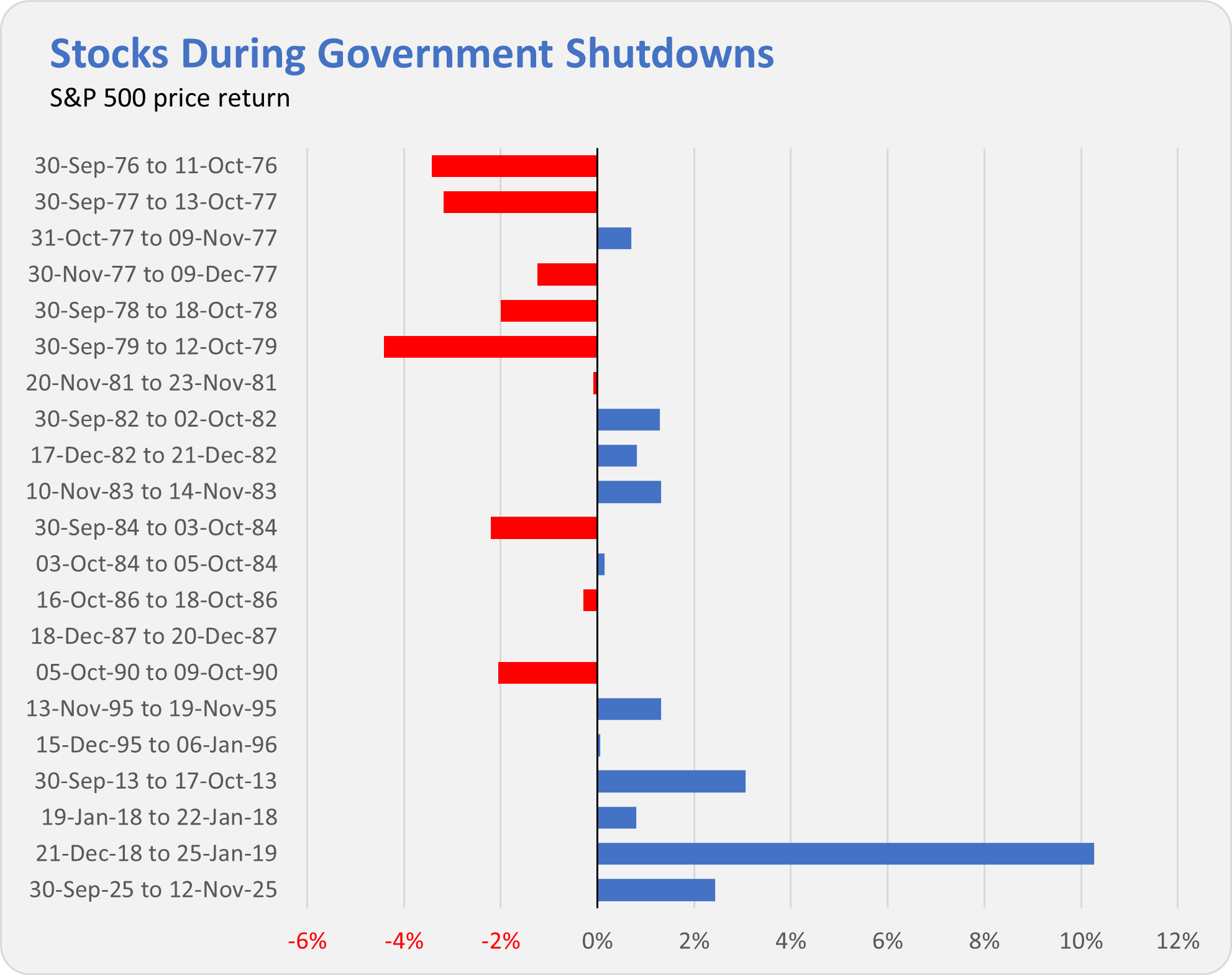 The S&P 500 index gained 2.4%—its third-best return during a government shutdown. It’s also better than the index’s average 31-trading-day return of 1.0%.